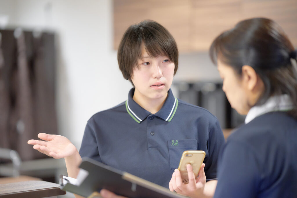 私はその中のケアリーダーとして、ケアスタッフのバックアップや指導に携わっています。後輩たちが快適に働けるような職場づくりや、いざというときに助け、守ることが自分の務めであると思っています。