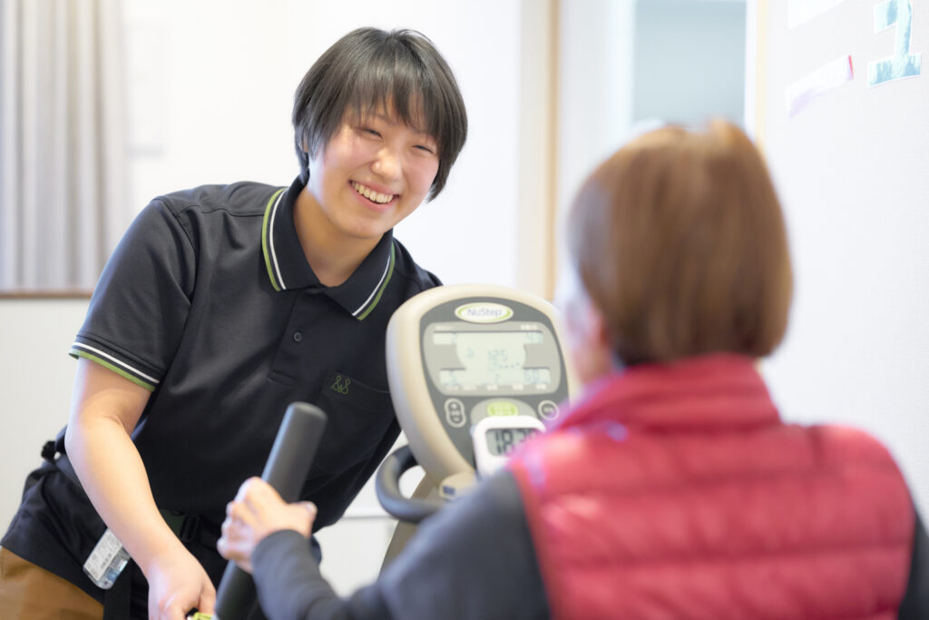 旅行先旅館の湯船をまたげるようになっていただくため、機能訓練指導員と看護師に協力を仰ぎながら、機能回復のトレーニングに日々取り組んでいただきました。